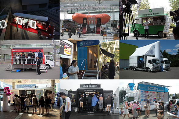 顧客との新たな接点を生み出すイベント・トラックの活用は、ここ数年で一気に広がった。AKB48やEXILEといった音楽アーティストを映しだした巨大移動広告「アド・トレーラー」が、街中を走り抜けるのはもはや当たり前の光景だ。最近では、コンテナが開くと舞台に早変わりする「ステージ・トラック」や、内部が空調管理された「ショールーム・トラック」も増えている。中には内部がメイクアップや調理のできる“異空間”に仕立てられているものまであり、その進化は著しい。