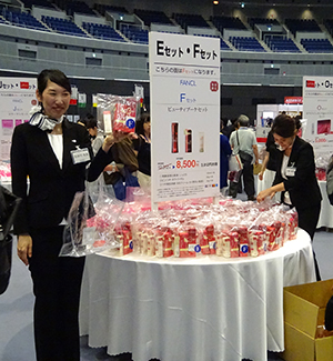 17種類ものセットが「優待価格」で提供され、たくさんのテーブルに山積みの商品が、飛ぶように売れてゆく。この日も総会前に千人を超える人が買い物を楽しみ、大半のセットが完売となった。ちなみに帰りのお土産も、ロングセラーの看板商品「マイルドクレンジングオイル」、発芽玄米の「グラノーラ」、「ディープチャージコラーゲン」などと豪華である。