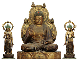 ②国宝『薬師如来および両脇侍像』(平安時代、醍醐寺蔵、画像提供:奈良国立博物館)