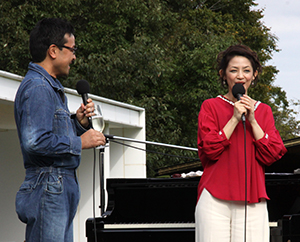 この日、ワイナリーでは郡山産ブドウの初醸造を記念して、ピアニスト西村由紀江さんのコンサートが開催された。西村さんはクラシックピアノを学ぶ一方で幼い頃から作曲の才能も注目を集め、映画やドラマのテーマ曲など、多数のオリジナル作品を発表、長年にわたり第一線で活躍してきた。土曜日の昼下がりで家族連れも来場する野外コンサートとあって、西村さんが考えたのは、誰もが知る親しみやすい曲目を交えたバラエティに富んだプログラム。客席は小さい子どもから年配者まで、幅広い年代でほぼ満席になった。