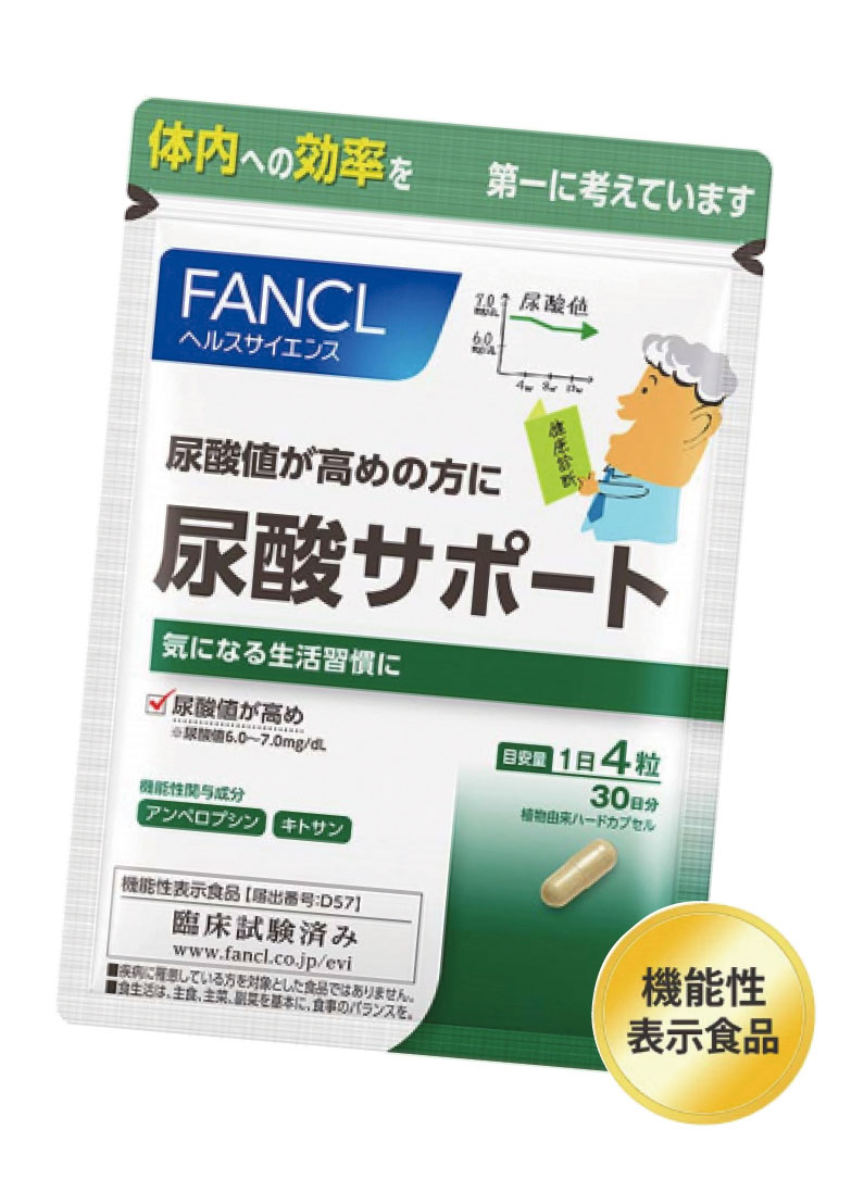 機能性表示食品のヒットを飛ばすファンケルが、「えんきん」「内脂サポート」に続く大型商品を2月18日に売り出した。高めの尿酸値を下げる機能が臨床試験で確認された日本初のサプリ、その名も「尿酸サポート」である。カタログ通販や店舗販売のスタート(4月18日)前に「ファンケルオンライン」で先行販売したところ、注文や問い合わせが相次いでいるという。