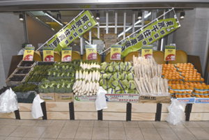 もともと千住には問屋が集中して軒を連ねる大規模な青物市場があり、「やっちゃ場」と呼ばれていた。空襲でその町並みは失われたが、今もその伝統は健在。このコーナーの野菜を仕入れている青果卸売市場「北足立市場」が同じ区内にあるのは、やっちゃ場の歴史が背景にある。