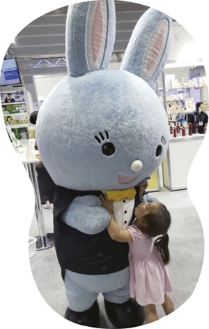 家族連れが増える15~16日(土・日)は、がらりとブースの雰囲気を変え、お祭りモードに。土曜日は化粧品のセミナーを中心に、メークアップや頭皮ケアのポイントをレクチャーし、日曜日はサプリメントやヨガの講座を行った。さらに、大きなガラガラを回してファンケル製品が当たる抽選会も実施。ウサギのキャラクター「マルタ」も登場し、子どもたちに大人気だった。