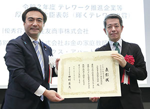 11月30日、都内で開催された「厚労省 輝くテレワーク賞」の表彰式に全国から受賞企業が出席した。コロナ前からテレワークを実施してきた先進企業ばかりだが、三菱商事太陽は取り組みの長さで群を抜く。福元邦雄社長は「5年前に創設されたこの賞も、ウィズコロナの渦中にある今年はこれまでとは全く違った局面にあると感じ、受賞を真摯に受け止めています」「私たちはいまも初代社長、中村裕博士の手のひらの上にいるようなものです」と、胸の内を語った。