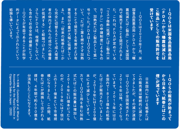 加熱式たばこの販売開始に伴って紙巻たばこの消費量が4年で34%も減少(*3) しました。