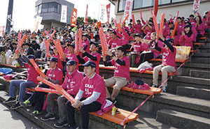 「大分国際車いすマラソン」を応援する三菱商事の社員たち