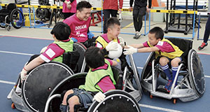 「DREAMキャンプ車いすラクビー体験」で活躍する今井選手