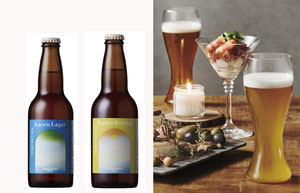 横浜ビールの「ラガー」(左)と「ヴァイツェン」
